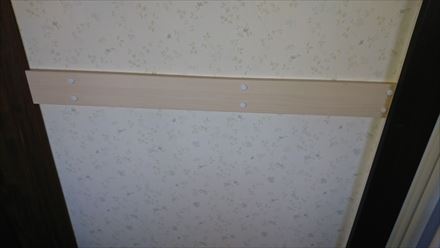 お客様自身で脱衣室にタオル掛けを設置。その後、何度も外れてしまうとのことで下地補強と化粧板の設置を行うことにしました。