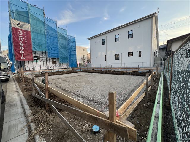 坂戸市山田町T・K様邸の工事が始まりました。まずは地鎮祭を行いました。そして、地盤調査を行い、根伐り、遣り方と進めて行きます。根伐り、遣り方とは建物配置を決める工事の事を言います。基礎を作る時、土を掘り、建物と道路の高さを図面通りにしないといけません。平行になっているかレーザーで測れる機械で、一寸の狂いなく配置していきます。