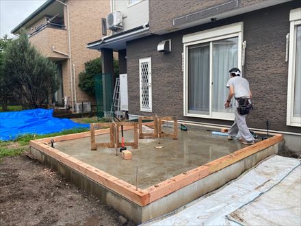 リビングの増築と玄関周りのリフォーム工事を行いました。増築なので、工事は基礎工事から。