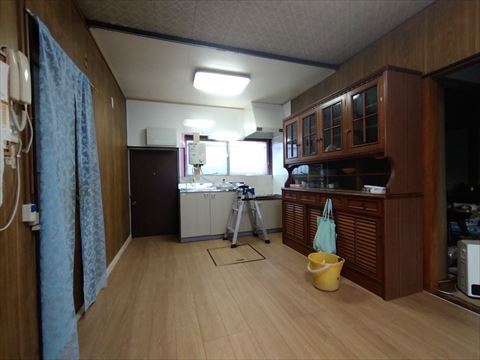 キッチンだった場所をリビングに。和室だった場所をダイニングキッチンに変更。押し入れだった所に造作のカップボードを作りました。